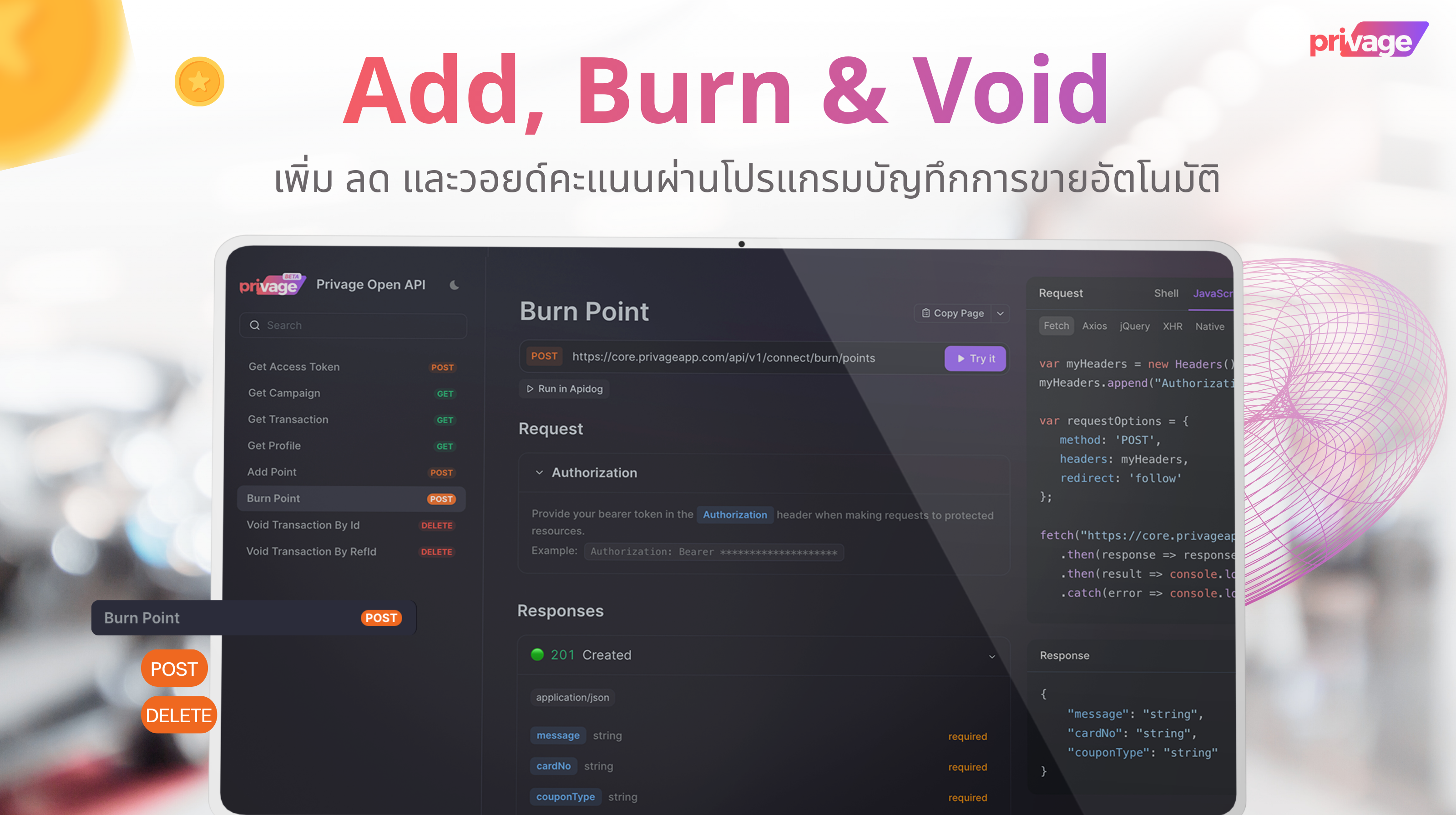 จากนั้นจึงนำทั้ง 2 Key ไป Get Access Token ตามเอกสาร https://api-docs.privageapp.com/