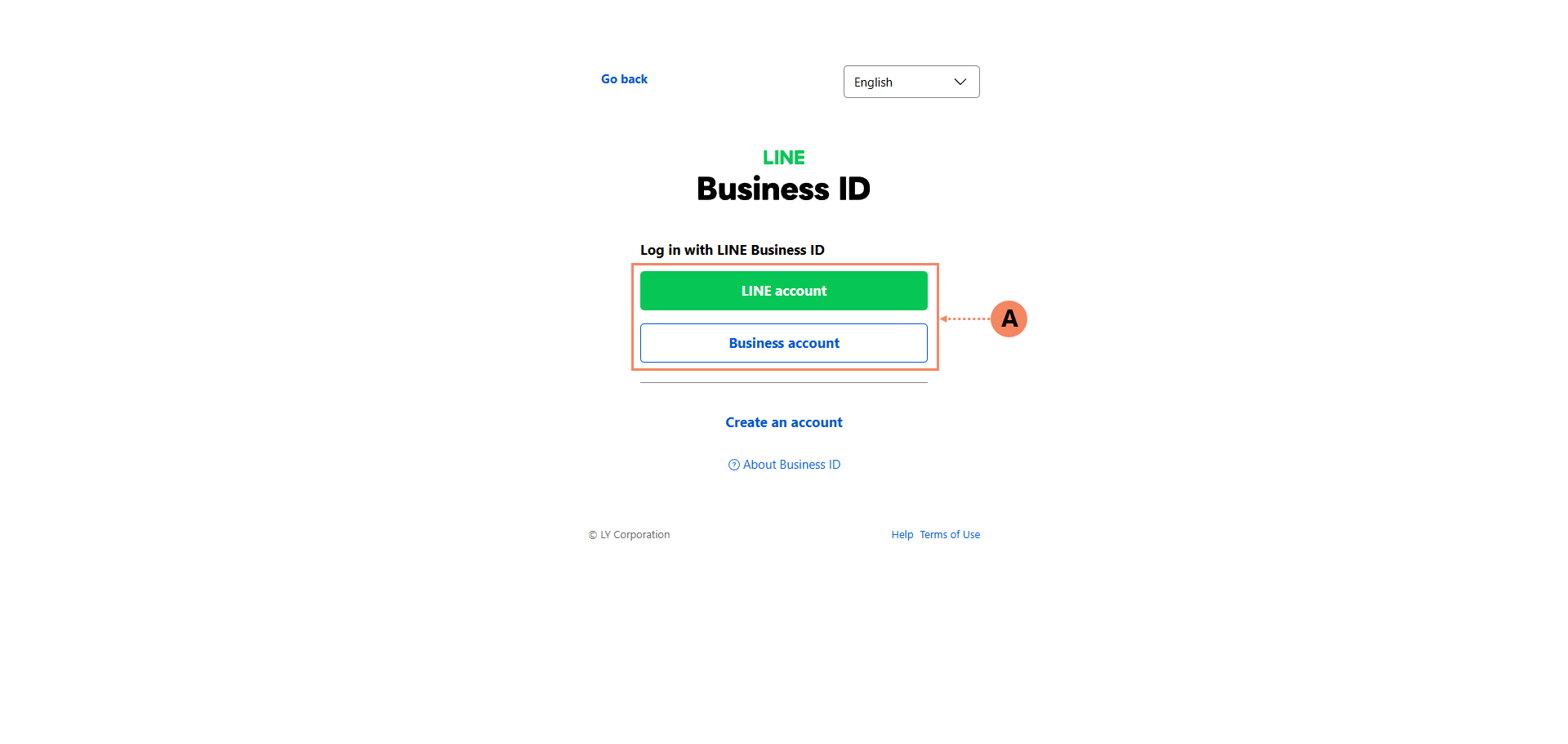 1.1 เข้าเว็บไซต์ Line OA Plus จากนั้นเข้าสู่ระบบด้วย Line Account ส่วนตัว หรือ Business account (A)