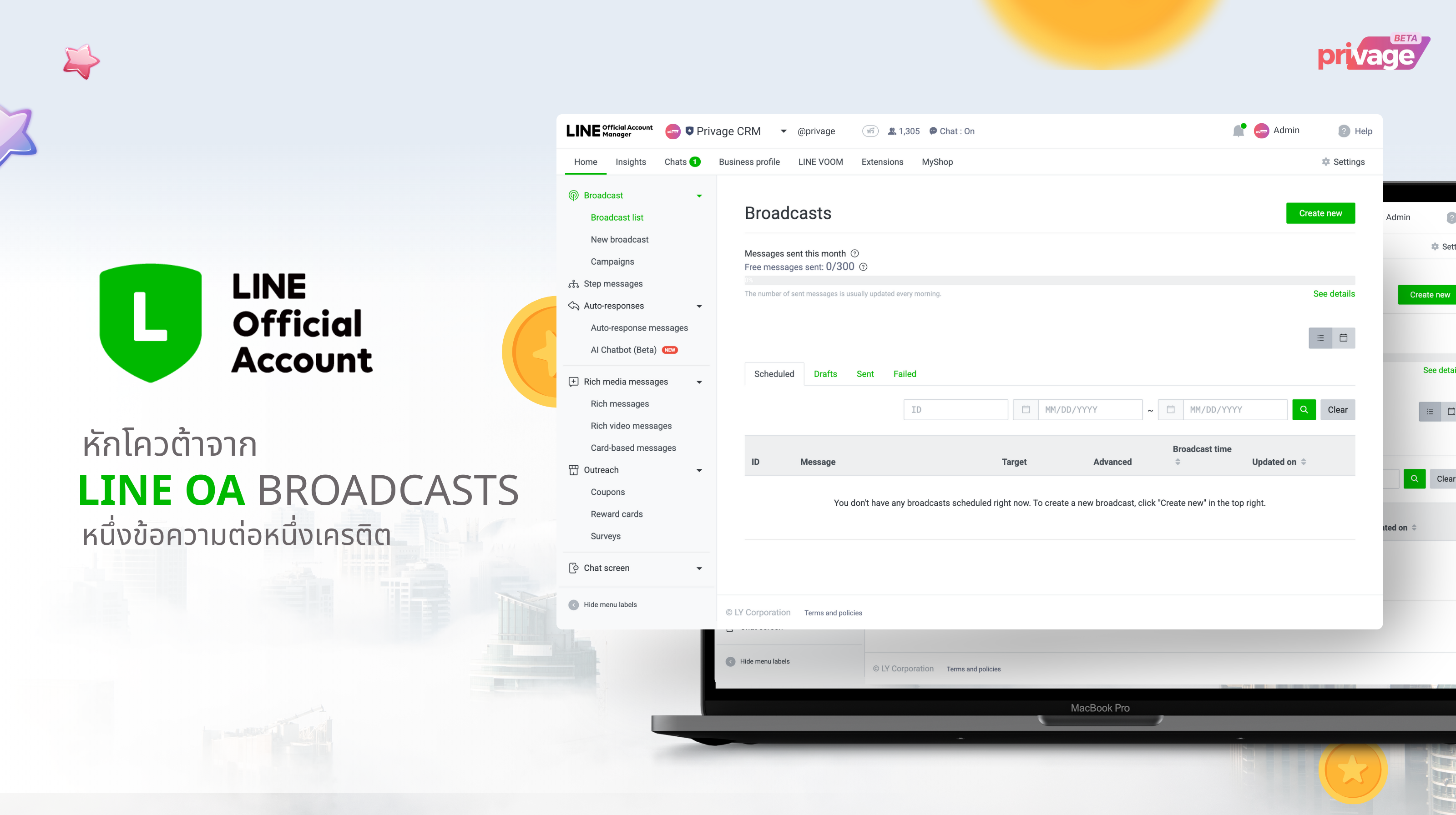 การเชื่อมต่อกับ Line Official Account (Line OA) โดยให้ระบบ Privage สามารถใช้งานร่วมกับ Line OA มีขั้นตอนดังนี้