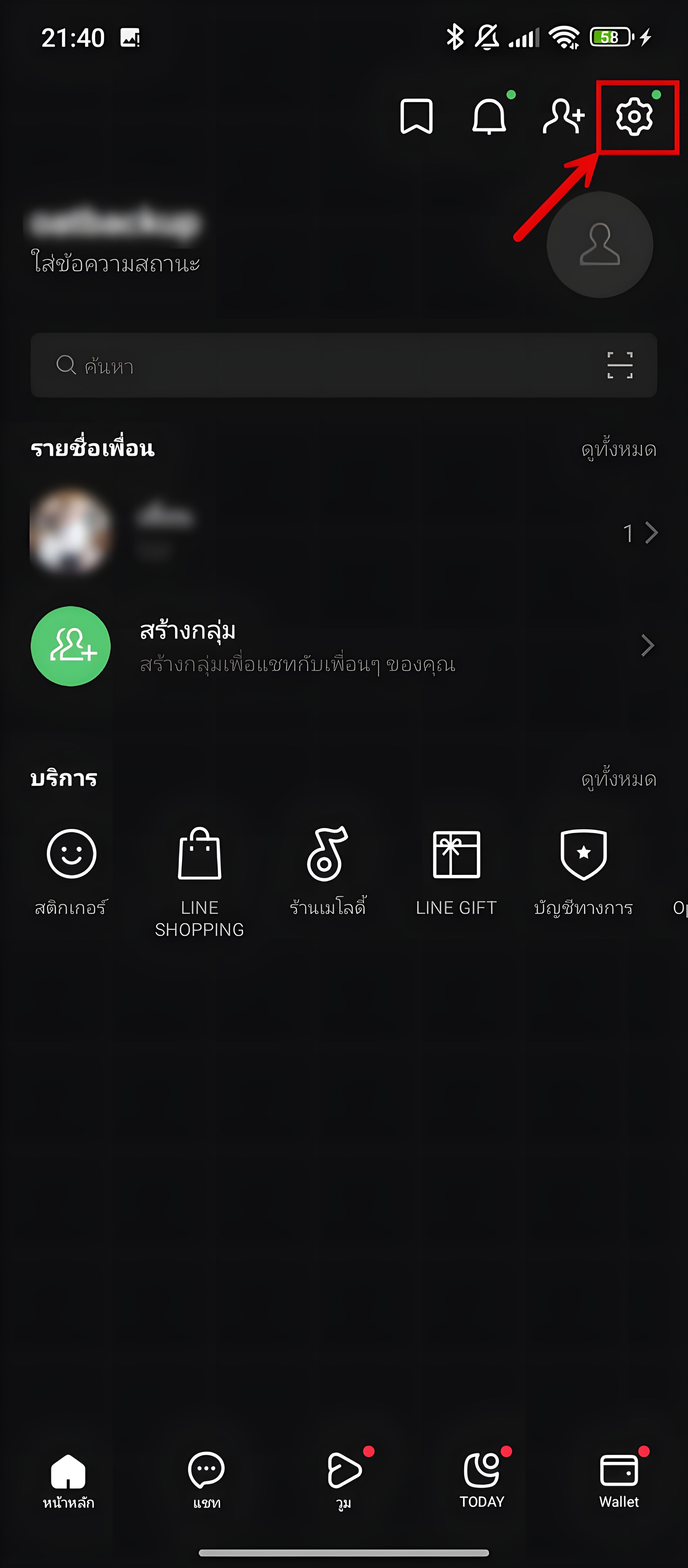 1.2 เลือกเมนู "ตั้งค่า" (Setting) โดยการกดที่ไอคอนรูปเฟือง ( ⚙️ ) ที่มุมขวาของหน้าหลัก