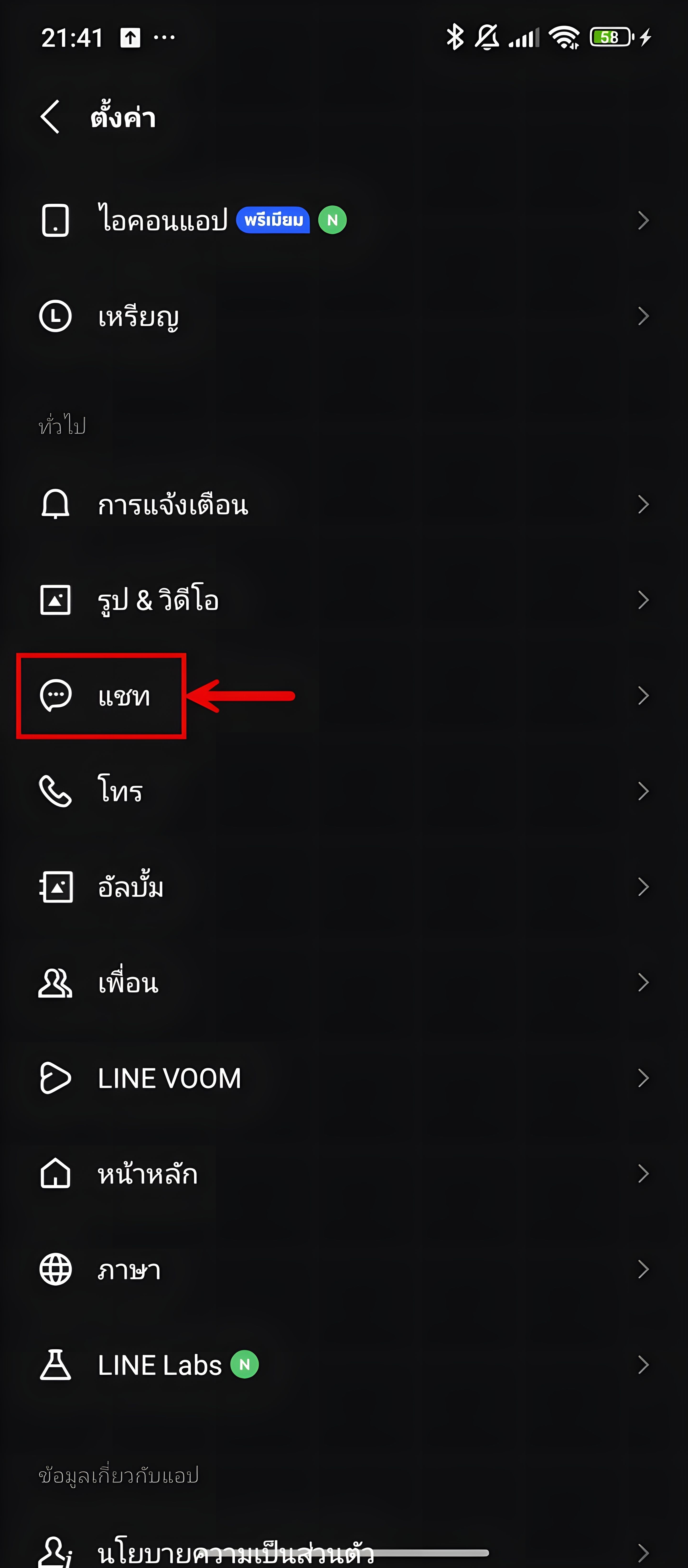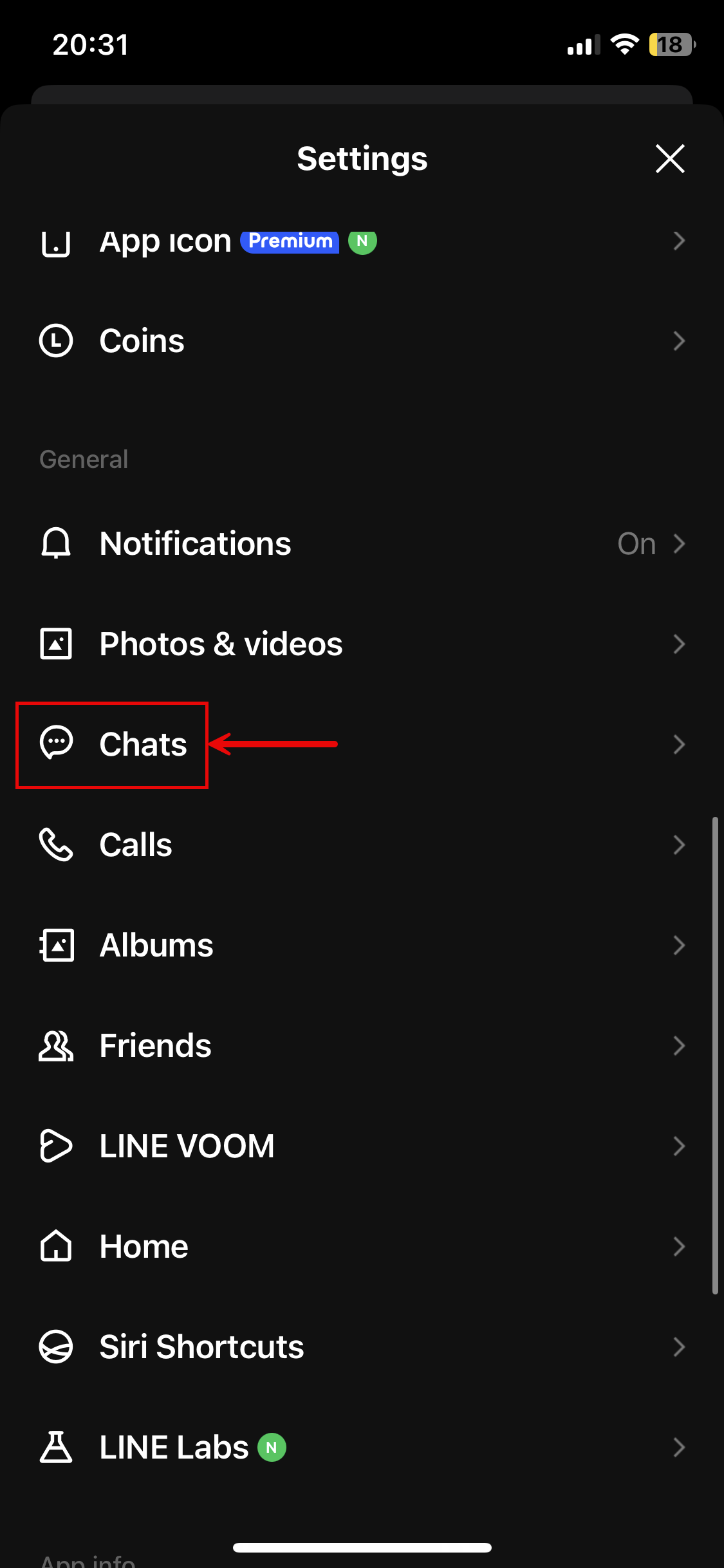 2.3 เลือกเมนู "แชท" (Chats) ในหน้าการตั้งค่า