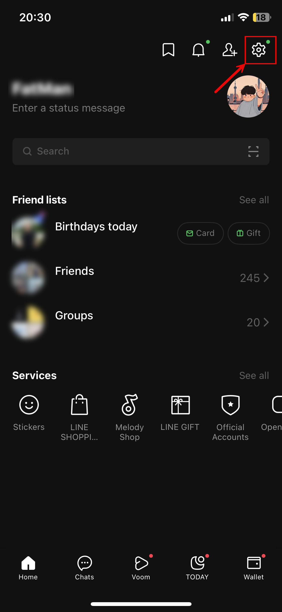 2.2 เลือกเมนู "ตั้งค่า" (Setting) โดยการกดที่ไอคอนรูปเฟือง ( ⚙️ ) ที่มุมขวาของหน้าหลัก